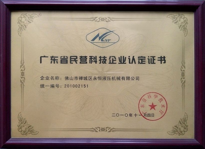 廣東省民營(yíng)科技企業(yè)認(rèn)定證書(shū)